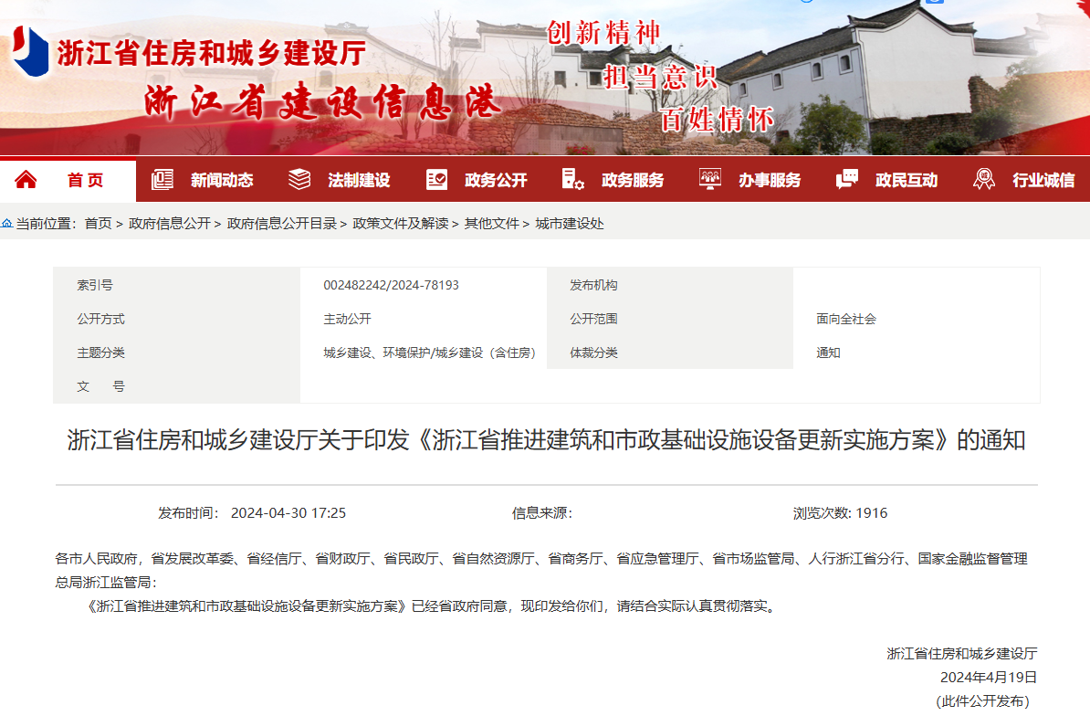關(guān)于印發(fā)《浙江省推進(jìn)建筑和市政基礎設施設備更新
