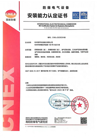 防爆電氣設(shè)備安裝能力認(rèn)定證書